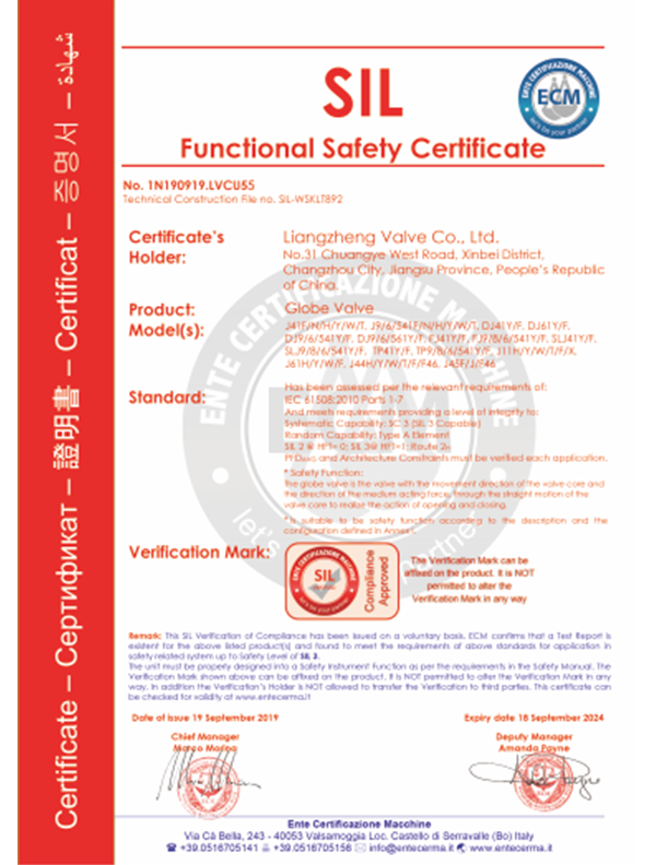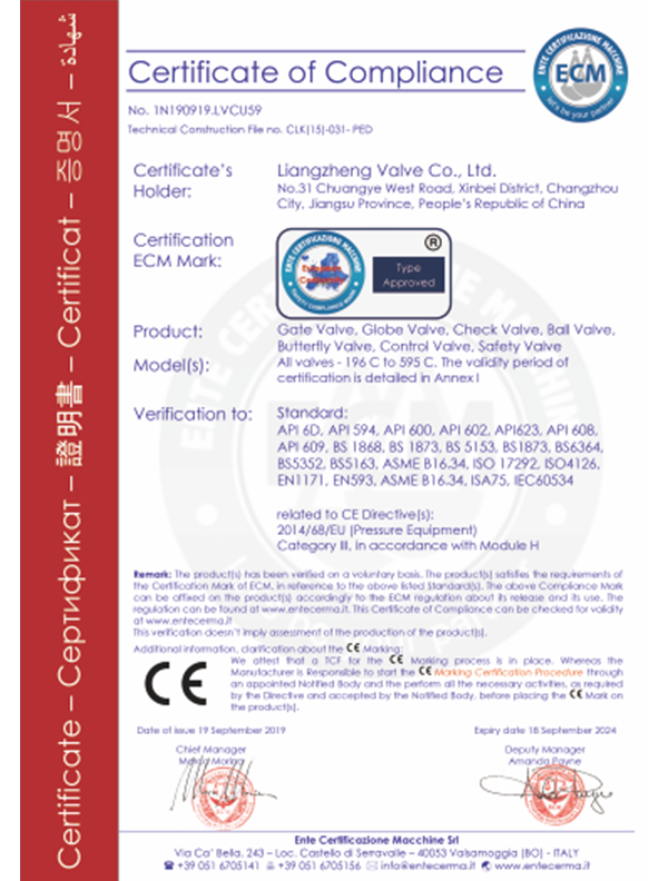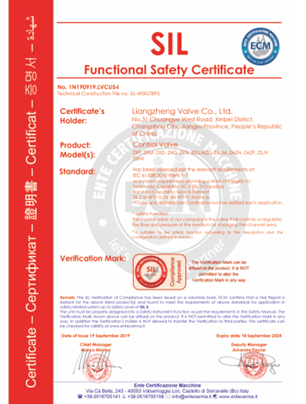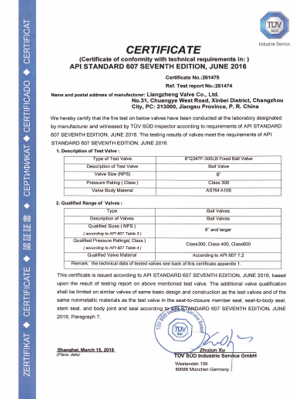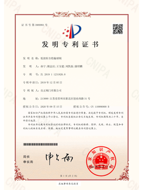 良正閥門均通過了”TS”特種設(shè)備制造許可A級認(rèn)證,API6D美國石油協(xié)會(huì)認(rèn)證,ISO9001國際質(zhì)量體系認(rèn)證,ISO14001環(huán)境體系認(rèn)證,ISO45001職業(yè)健康安全管理體系認(rèn)證,德國南德TUV頒發(fā)的API607防火認(rèn)證,SIL3安全評估證書,CE歐盟證書,兩化融合證書,知識(shí)產(chǎn)權(quán)貫標(biāo)證書,AA計(jì)量、AAA測量體系等證書。